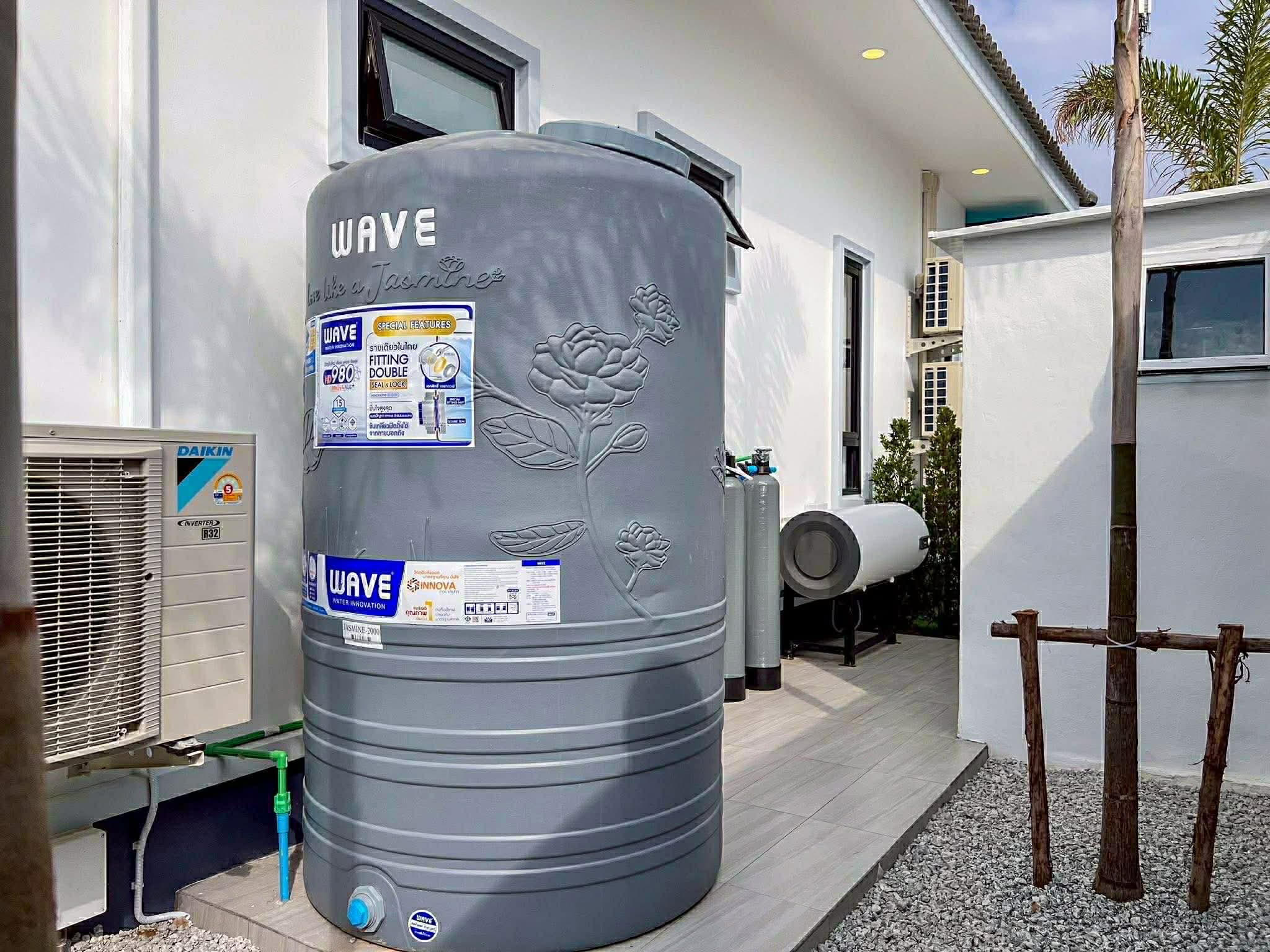 - Water pump + 2,000L tank + filtration system