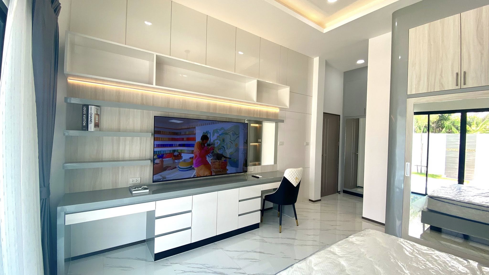 - Fully built-in throughout (wardrobes, beds, TV units, work desks)
