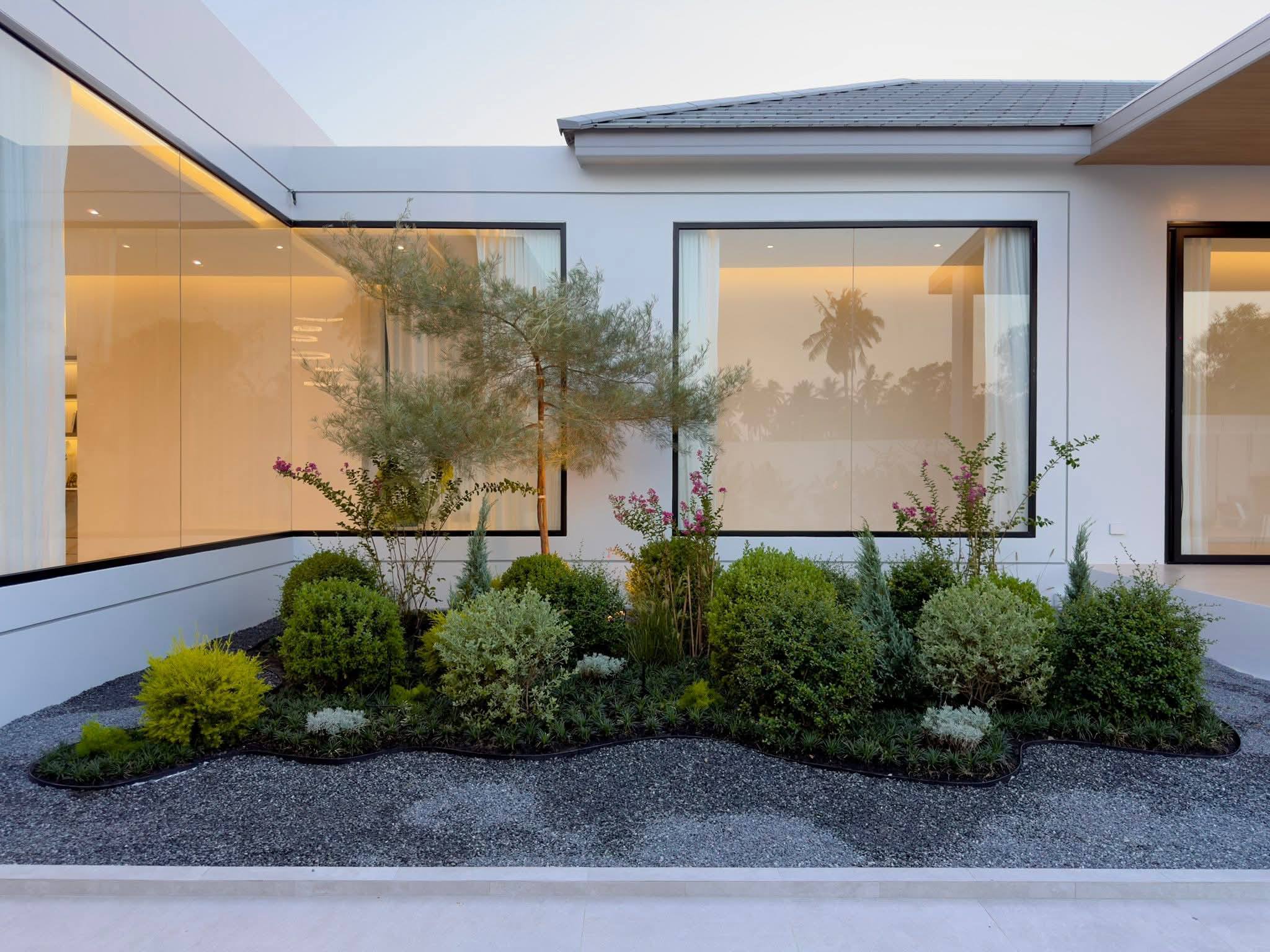 - Two landscaped garden zones surrounding the home
